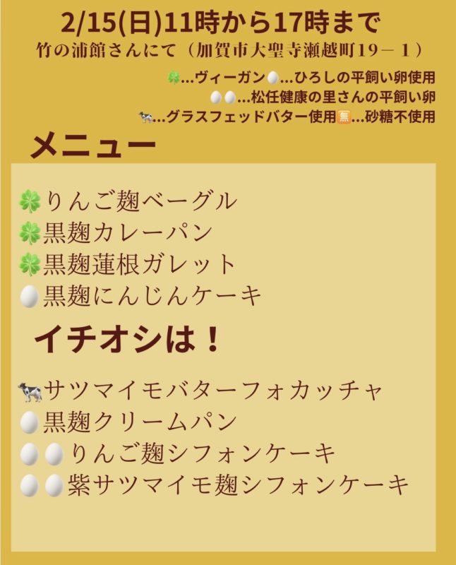 【2/15(日)イベント販売のお知らせ】